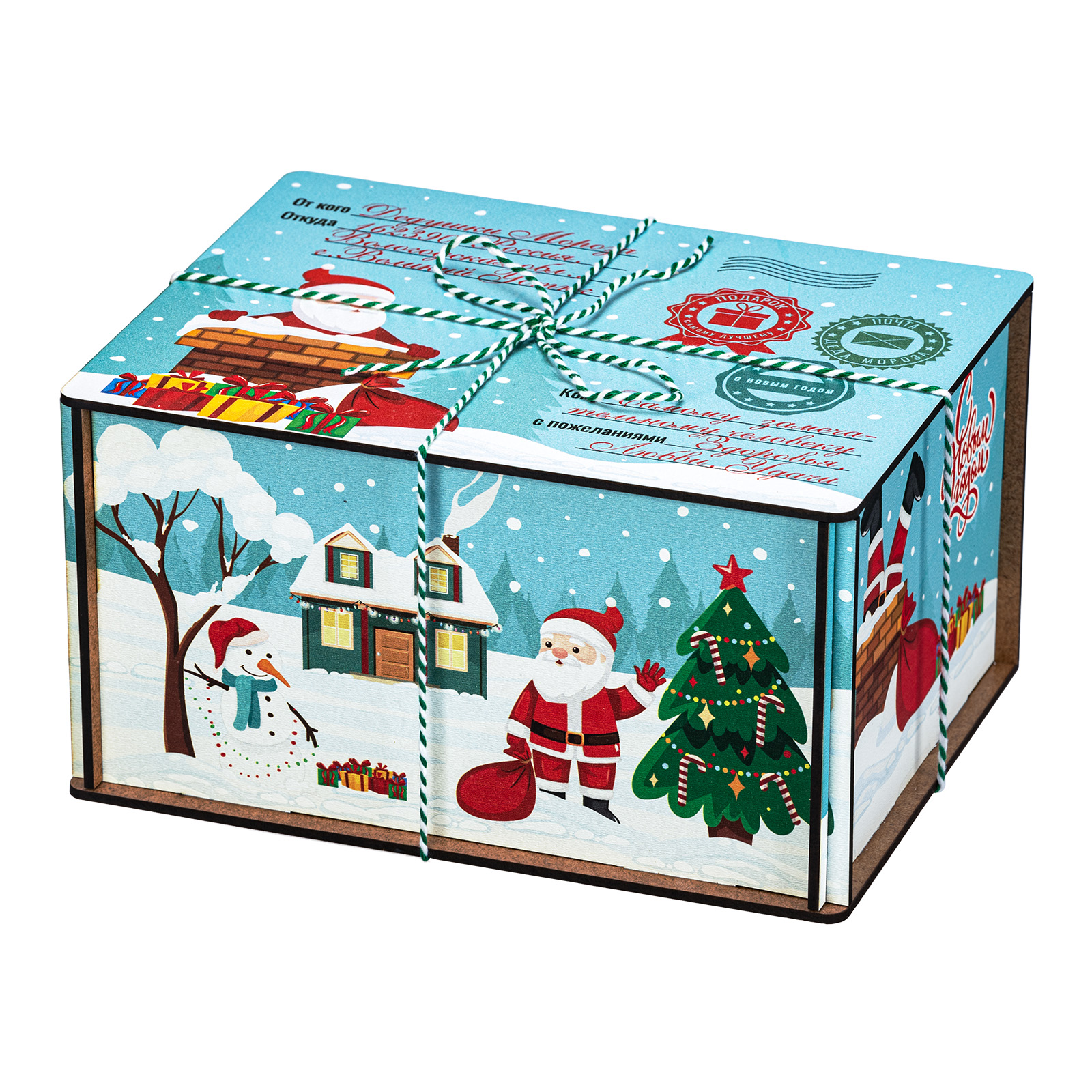 Новогодние сладкие подарки в деревянных упаковках уже не первый год пользуются высоким спросом у покупателей. Это не просто так - такие подаркаи отличаются оригинальностью и практичностью. Набор “Мятная ночь” не исключение. Это небольшая деревянная коробочка с виду напоминающая бандероль. Упаковка отличается необычным приятным цветом, который прекрасно сочетается  с разннобразными новогодними рисунками, помещенными со всех сторон. Сверху подарок перетянут удобной ручкой-шнурком. Набор состоит из килограмма разнообразных кондитерских изделий и небольшой памятный сувенир в виде лошадки - символа 2026 года.