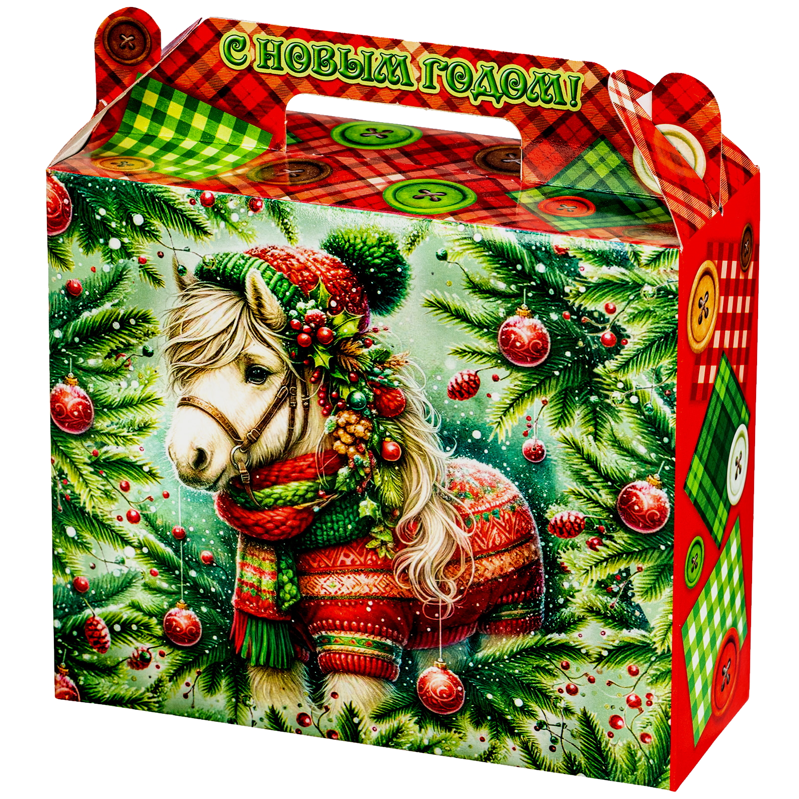Интересный вариант новогоднего подарка – «Пуговка (Полезный состав)». Он представлен в разделе Картон. Отлично подойдет на подарок в 2026 году с символом Лошадь. Внутри такого презента находится кондитерский набор весом 500 граммов.