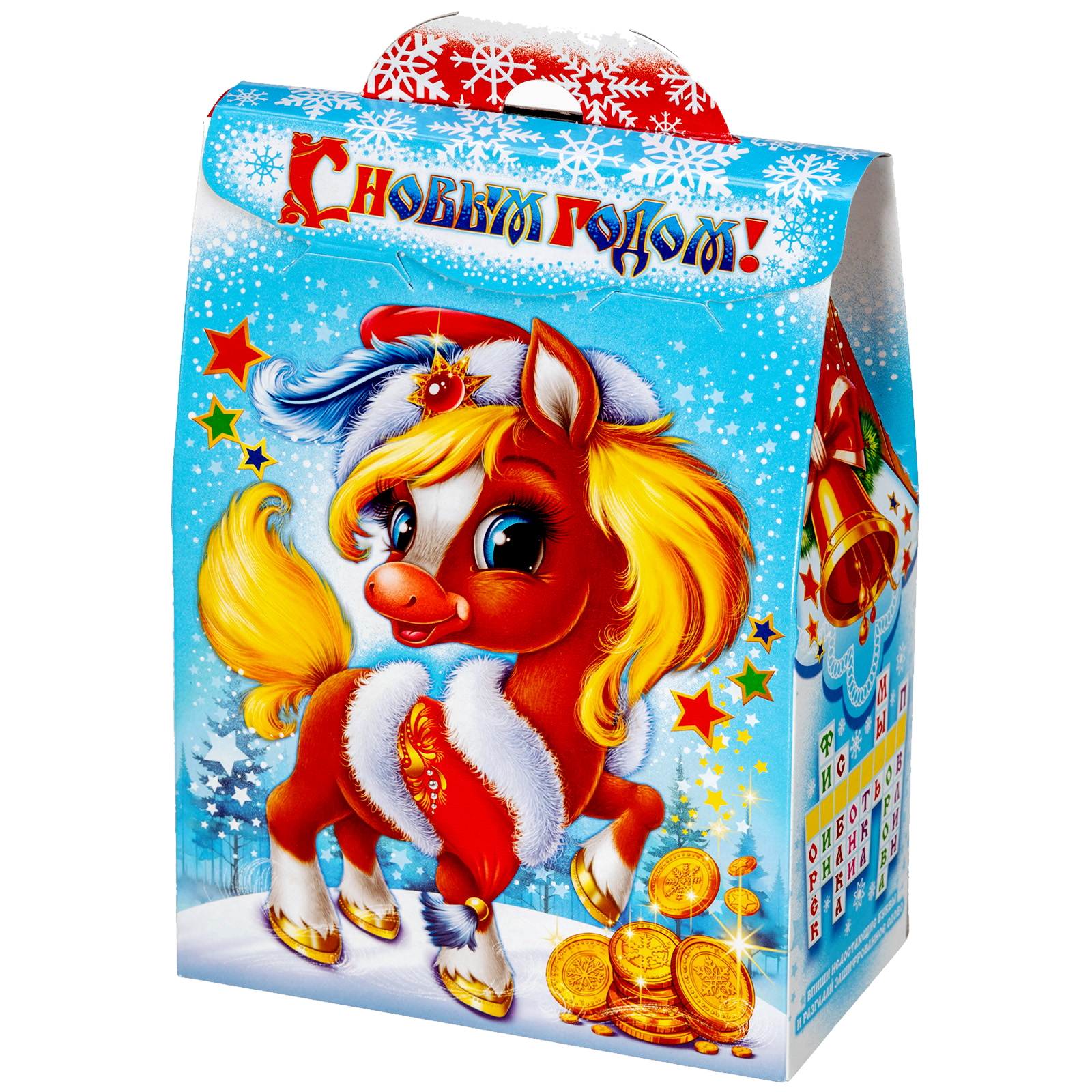 Многие считают, что Новый год - это та самая пора, когда даже самые невероятные желания могут сбываться! Набор “В ожидании чуда” - это как раз про исполнение мечт!  Сладости бережно упакованы в небольшую картонную коробочку нежно-голубого цвета. На ней есть поздравительная надпись, рисунок огненно-рыжей лошадки, а также небольшой праздничный кроссворд сбоку. Разгадав его, ребенок получит доступ к сокровищам!  В состав подарка входит 700 грамм отборных кондитерских изделий от ведущих кондитерских фабрик и небольшой памятный сувенир в виде символа года.